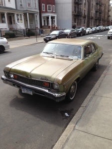 Am very excited. I just got to meet the owner of a car that I have been fascinated with for 30 years. I was lucky enough to find Coach Nicky sitting in his car waiting for alternate side of the street parking rules to be over. It’s a 73 Chevy Nova with 55,000 original miles. Coach told me it was bought new for his grandfather and used and garaged in Westchester County. In the 80s he brought it to a Astoria and that’s when I started noticing it because my father also had a 73 green Chevy Nova. We had a half white final roof because we were fancy. Coach also told me that the 40-year-old car has never been outside of New York State. He knows how it looks and what condition it’s in but he hasn’t had a car payment for over 40 years. Really nice guy.