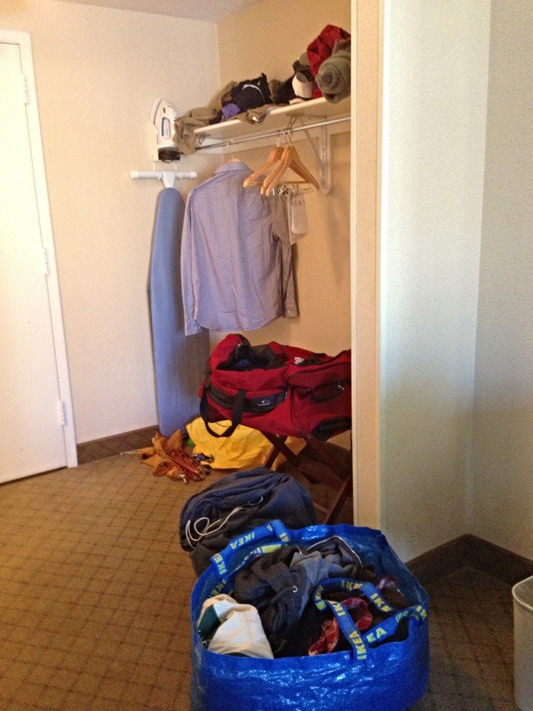 This is also why I’m choosing to stay at places like the Holiday Inn Express. Luxury hotels charge you to do laundry, while I am doing a load of laundry including the cost of soap for $2.25 in a clean, safe and modern laundry room down the hall. My thinking is, everything in the laundry is stuff I use and like and the rest were not my favorite items. A lot of those less loved items will end up at the Baptist church across the street.