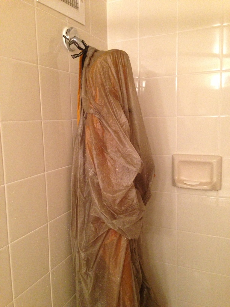 It’s my tent’s rain cover and the ground tarp and they refuse to dry. I will just leave them wet for the rest of the trip as their job is to get wet anyway.