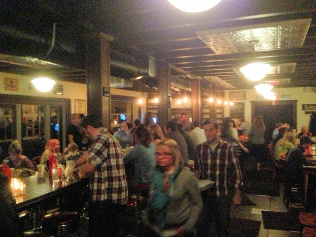At first I thought my GPS was playing with me again because I was in a residential neighborhood. Then out of nowhere pops up a beautiful restaurant and beer garden. You walk inside and are transported immediately to Williamsburg, Brooklyn. Young cute hipsters with twirly little mustaches and skinny jeans serving up bespoke burgers on bespoke buns. To bypass the huge wait I took a stool at the bar and ordered the classic pharmacy burger. It comes with yellow cheddar, pickles, lettuce, tomatoes and a secret sauce – I’m pretty sure that mayo is in on the secret. I asked for it medium rare and they cooked it perfectly. It’s a loosely packed burger with a very irregular shape and the meat just falls apart. The bun is more like chibata bread but they call it a Provence bun. It was absolutely delicious. The soft burger really does need that harder bun. I’m not a dainty eater but this burger was huge. And for $7.50 it comes with one side. I chose the sweet potato fries, which were actually crunchy. This was all washed down with a simple and light Moerlein Helles Lager from Cincinnati.