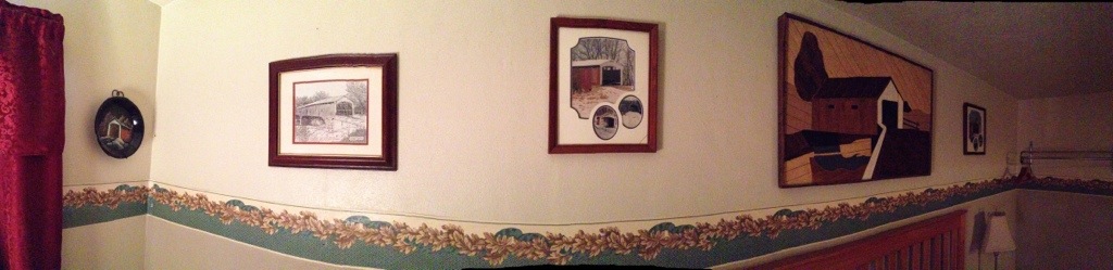 The motel’s owner, a very efficient woman, told me that she prides herself on her motel’s cleanliness and that each room has its own theme. Parke County is famous for wooden covered bridges. That’s the room I got. Now I don’t have to tour today and see the bridges because everyone of them is either pictured or sketched on the wall of my room.