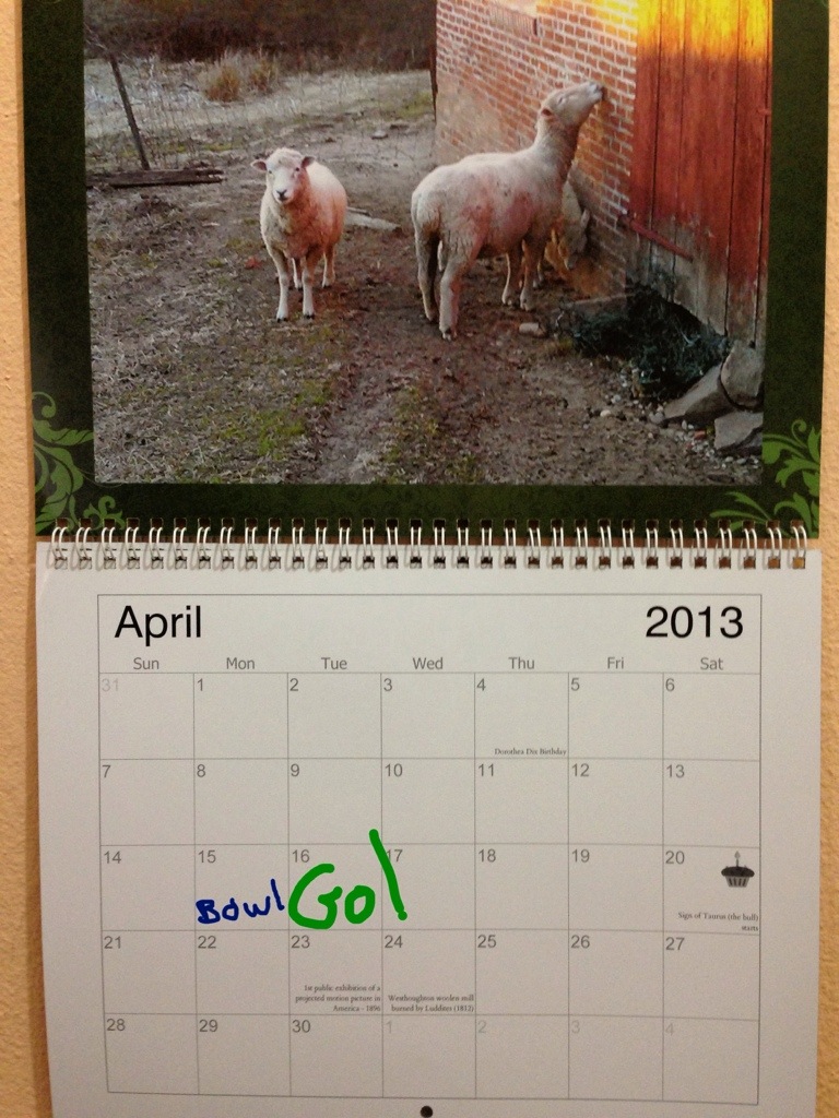 Seeing our Sheep Calendar makes me feel close to you. Although I know you left it behind in NYC. love, Jess