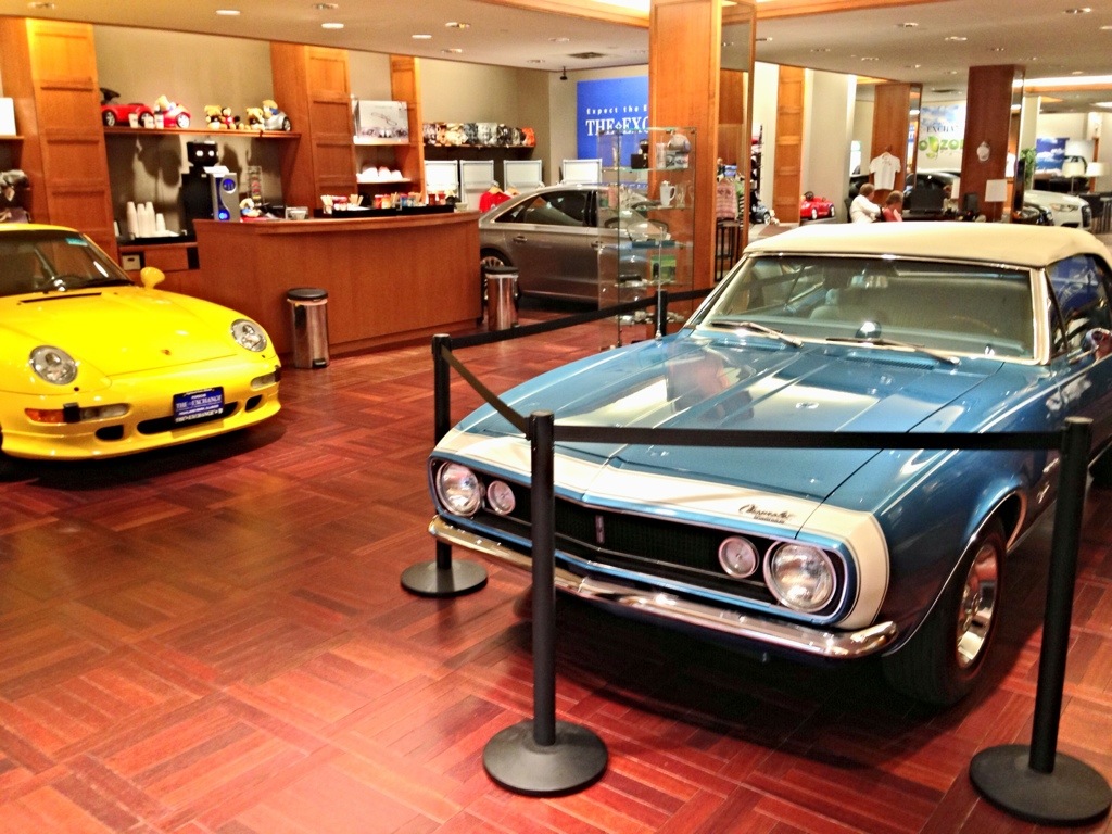 I was in the Northbrook Mall to do a little cinnibun shopping when I spotted The Exhange. Looked like a small auto showroom. The sales woman explained they are owned by a Porsche, Audi and Chevy dealer (one of those things does not go with the other) and its just for fun and looking, you have to buy at the dealership. But they had several sales people so I still don’t understand. Above is a 61 Auto Union (Audi to you kids) 1000s. I think you know what’s pictured below.
