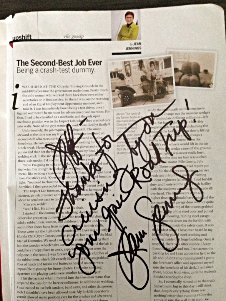 Today I got to meet a person I admire very much, Jean Jennings, the President and Editor-in-chief of Automobile Magazine.
