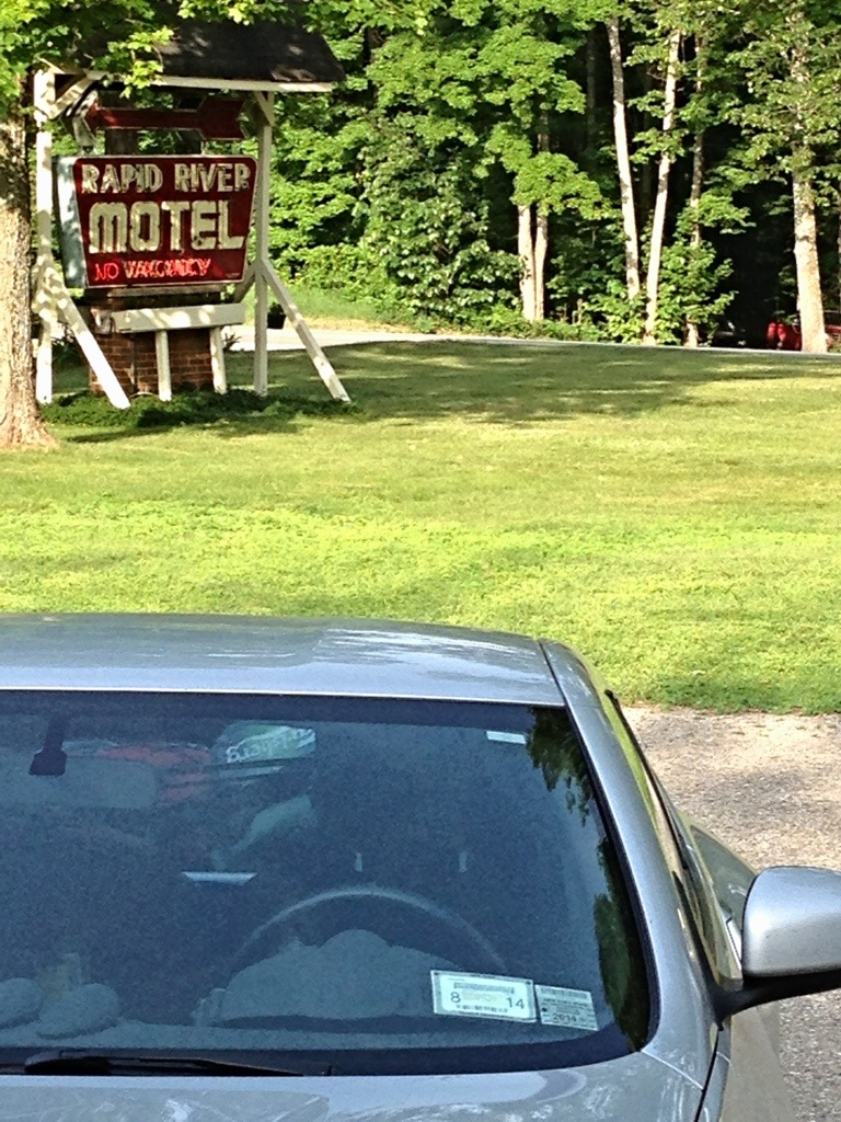 After a few days of camping I like to spend the night in a motel, use a real mattress and scrape some of the dirt off. Last night I passed a quaint looking motel, the Rapid River. A few hundred yards later the ghost of Patrick Swayze took over my body and stomped on my brakes. It was The Roadhouse. Pictured below without all the pick-up trucks and motorcycles there last night.