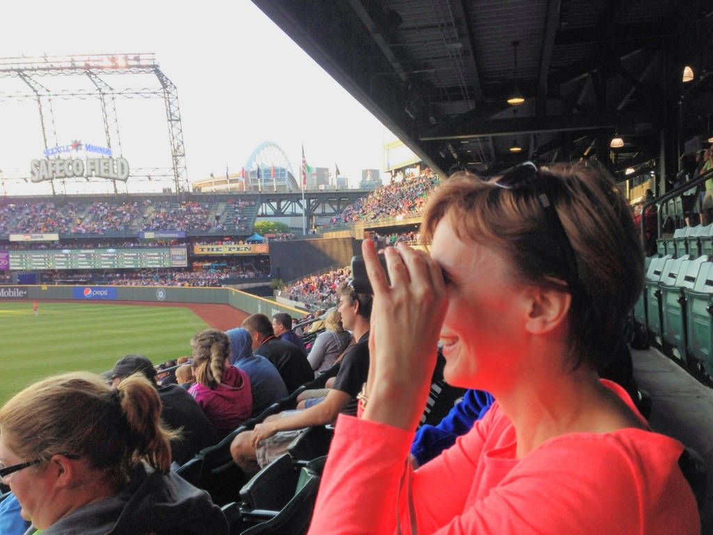 So I told her to just look at their asses and see who has the best ass. The best ass wins. This she understood. Her mother and younger sister also appreciated this point and whipped out opera glasses. The consensus was that Los Angeles Angels leftfielder, Collin Cowgill, won the game. Her Aunt stayed loyal to her boyfriend, Seattle Mariner Raul Ibanez.