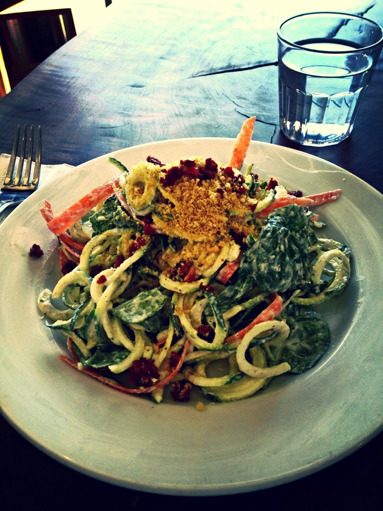 I went back for dinner and had the wandering heart “pasta.” This was wonderful. They shave the cucumbers into long and fun strands and do things with cashews to somehow give the dish a light creamy texture and cheesy flavor.