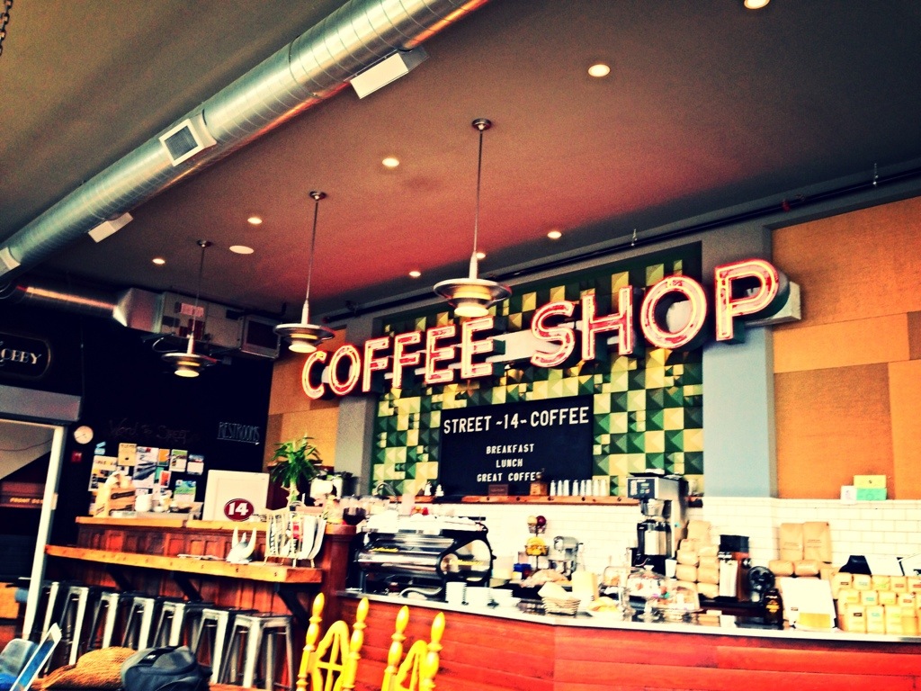 The lobby of the hotel is dominated by the Street 14 Coffee shop. They made a perfectly cooked egg, spinich, tomato, and Swiss panini for my breakfast. All the baked goods are made here. I tried the oatmeal cranberry cookie. Tart, sweet, lovely. The staff is cute, efficient and less of the namaste shit I’d been seeing in Portland. Not sure why the barista drew a butt in my espresso.