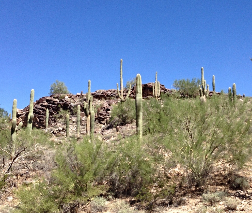 After three hours of hiking South Mountain, west of Tempe, I realized I was off track and needed a shortcut. I decided to go down the face of South Mountain as it’s a more direct route. I forgot about cacti and that every plant that is not cactus has thorns. It took me two hours, a lot of it on my ass sliding down boulders. I thought to myself, “This is not how it’s going to end. It can’t because I can see my car.”