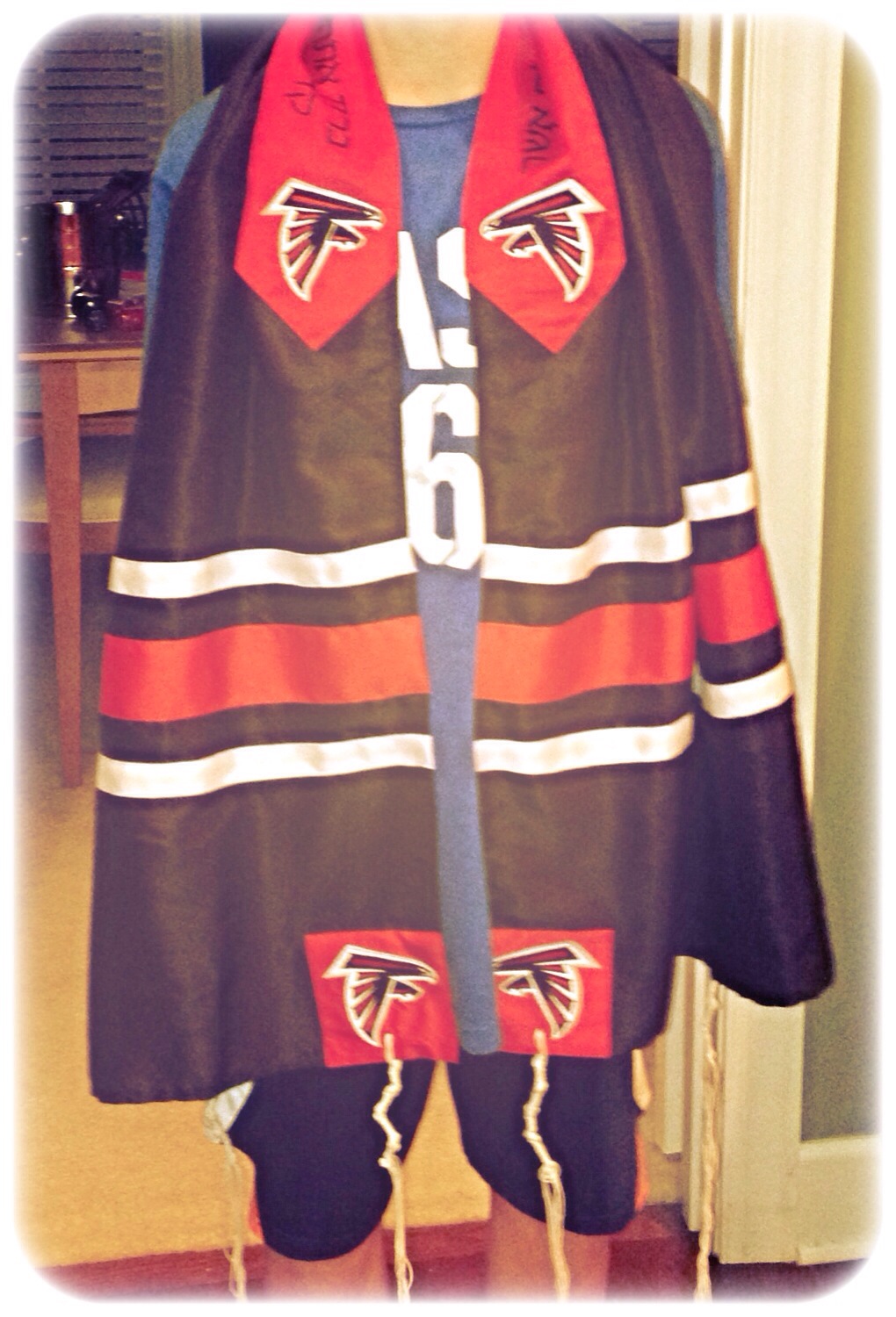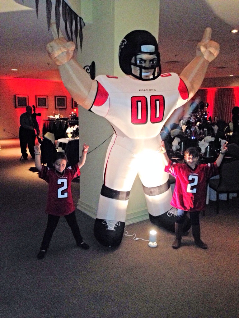 Yes, that’s an Atlanta Falcons Tallis lovingly made by both the bar mitzvah boy’s bubbies and approved by the Falcons’ PR team.