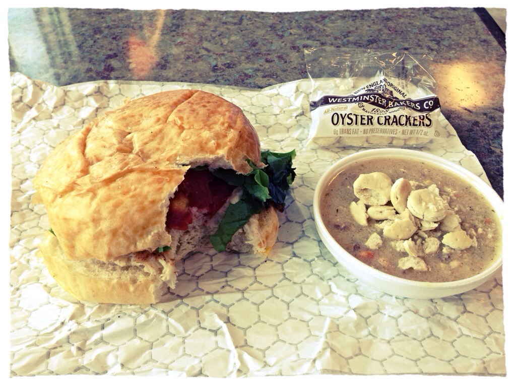 First off, I tested every filter and tried to make this crabcake sandwich and cup of clam chowder look as disgusting as possible. Martha Stewart is getting a lot of flak for her food tweets. I bow down to her because she managed to make delicious dishes look like gaping wounds. I cannot even manage to get clam chowder, which looks like vomit from the get-go, to look bad.