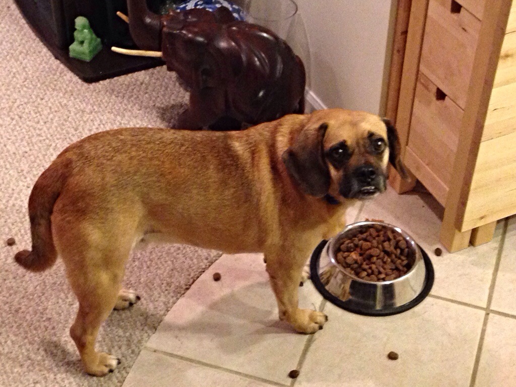 The hound managed to pick out every piece of lamb and lick up all the sauce without eating a single piece of kibble.